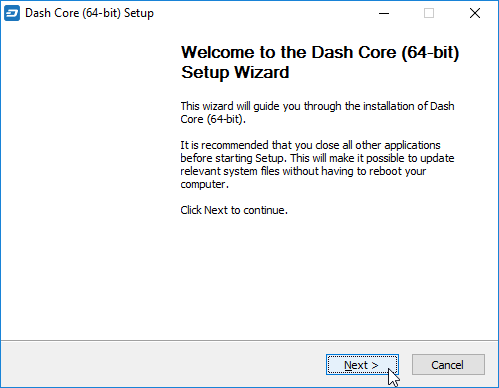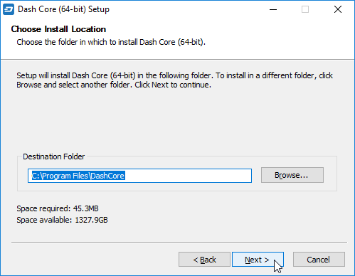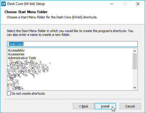 Running the Dash Core installer#