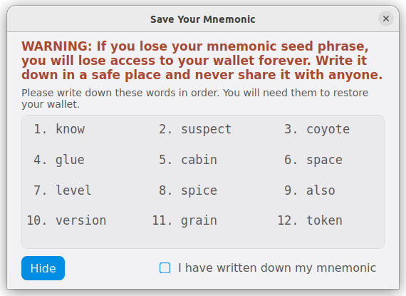 Backing up your mnemonic#