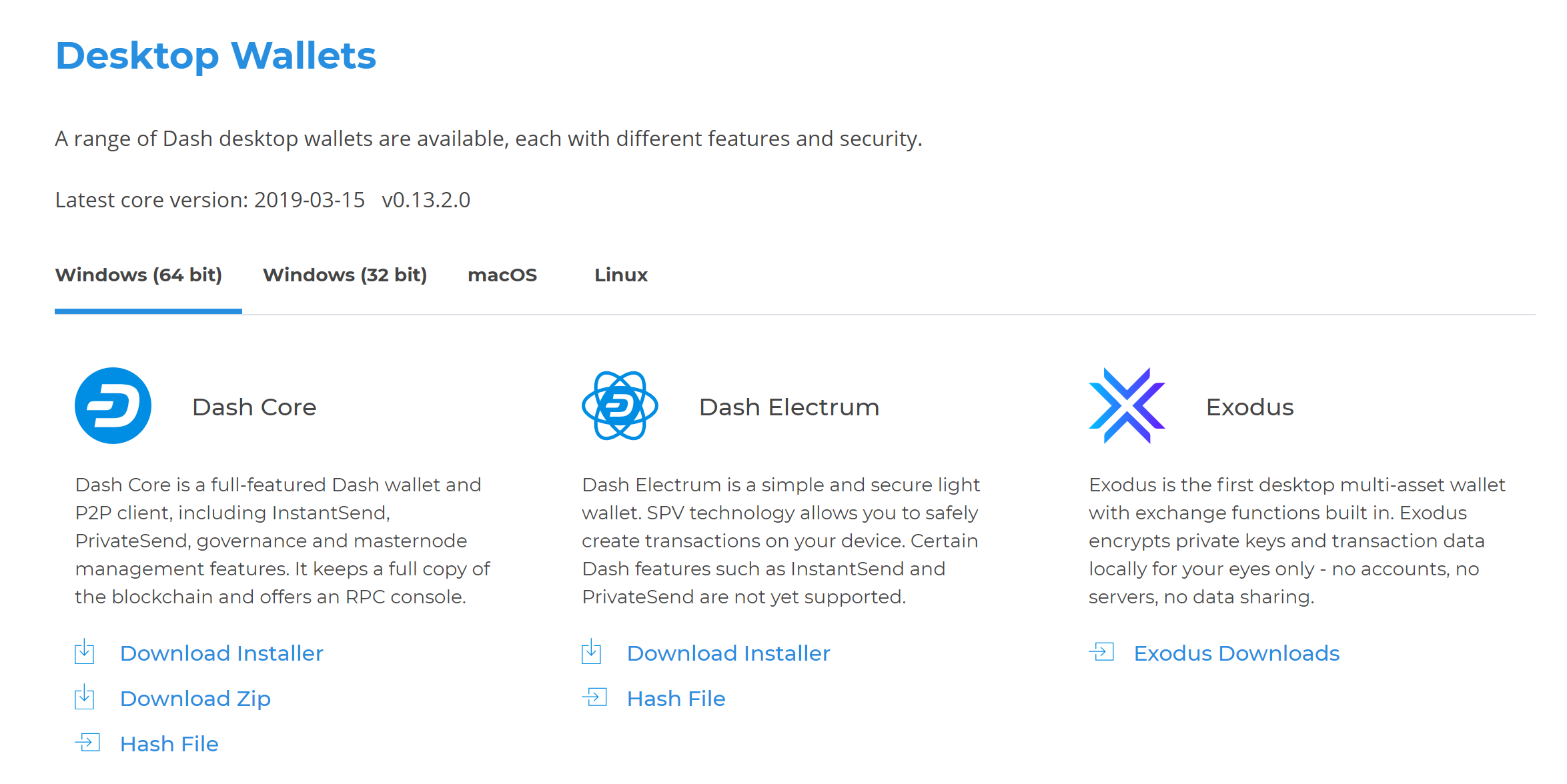 If detection does not work, you will need to manually choose your operating system. Once you know which version you need, download the Dash Core Installer to your computer from https://www.dash.org/downloads/ and save the file you downloaded to your Downloads folder.