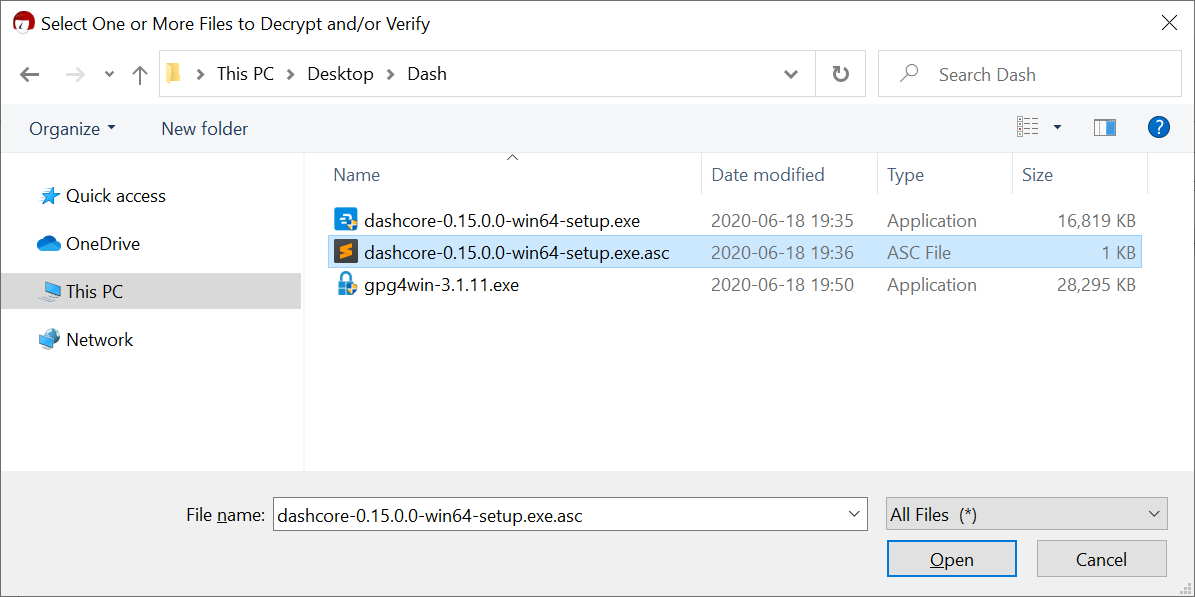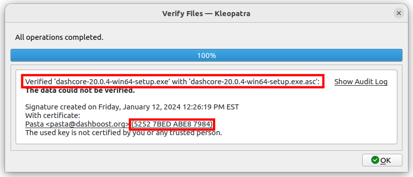 dashcore-23.0.2-win64-setup.exe.asc then you have an authentic copy