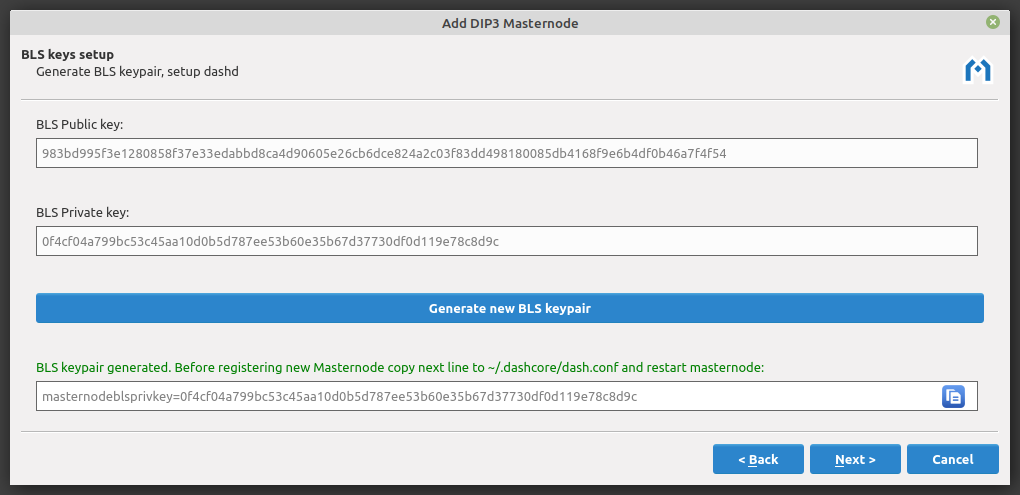 The masternode owner may also update the operator BLS key at any time. Click Next to continue.