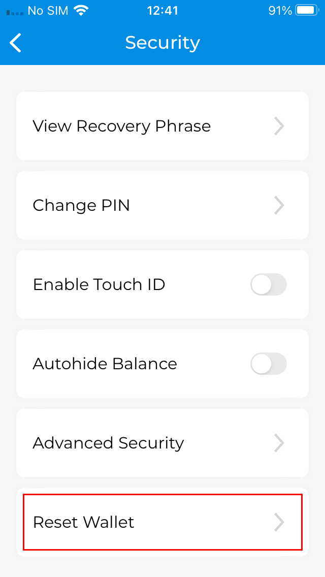For devices that already have an active wallet, first write down the existing recovery phrase as a backup. Click the menu button on the bottom right corner and select Security > View Recovery Phrase to find it. After backing up the recovery phrase, reset the wallet by selecting the Security > Reset Wallet option and then proceed with restoring the recovery phrase.